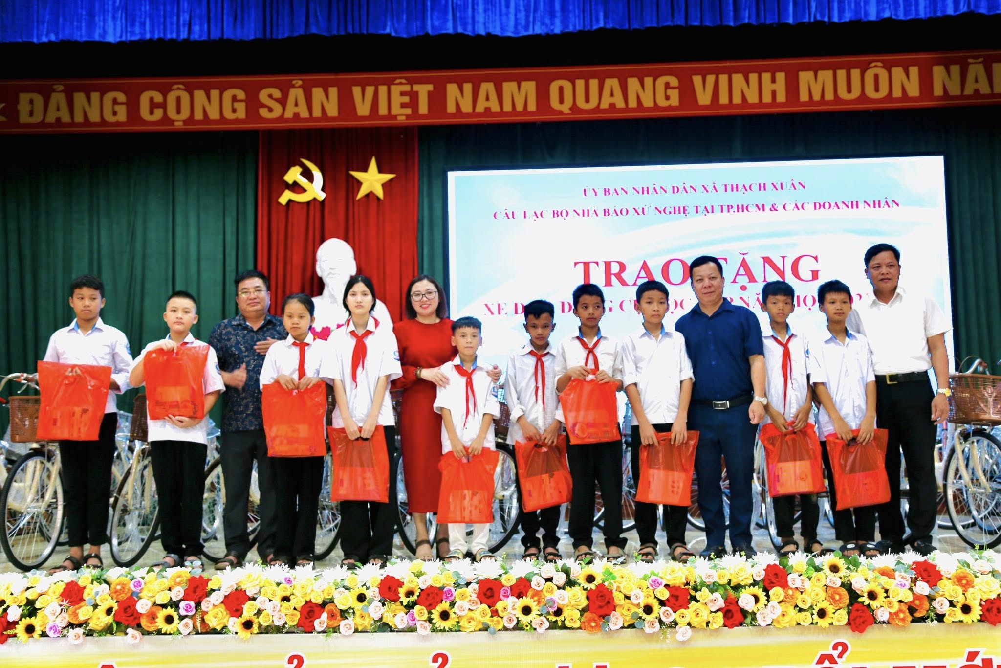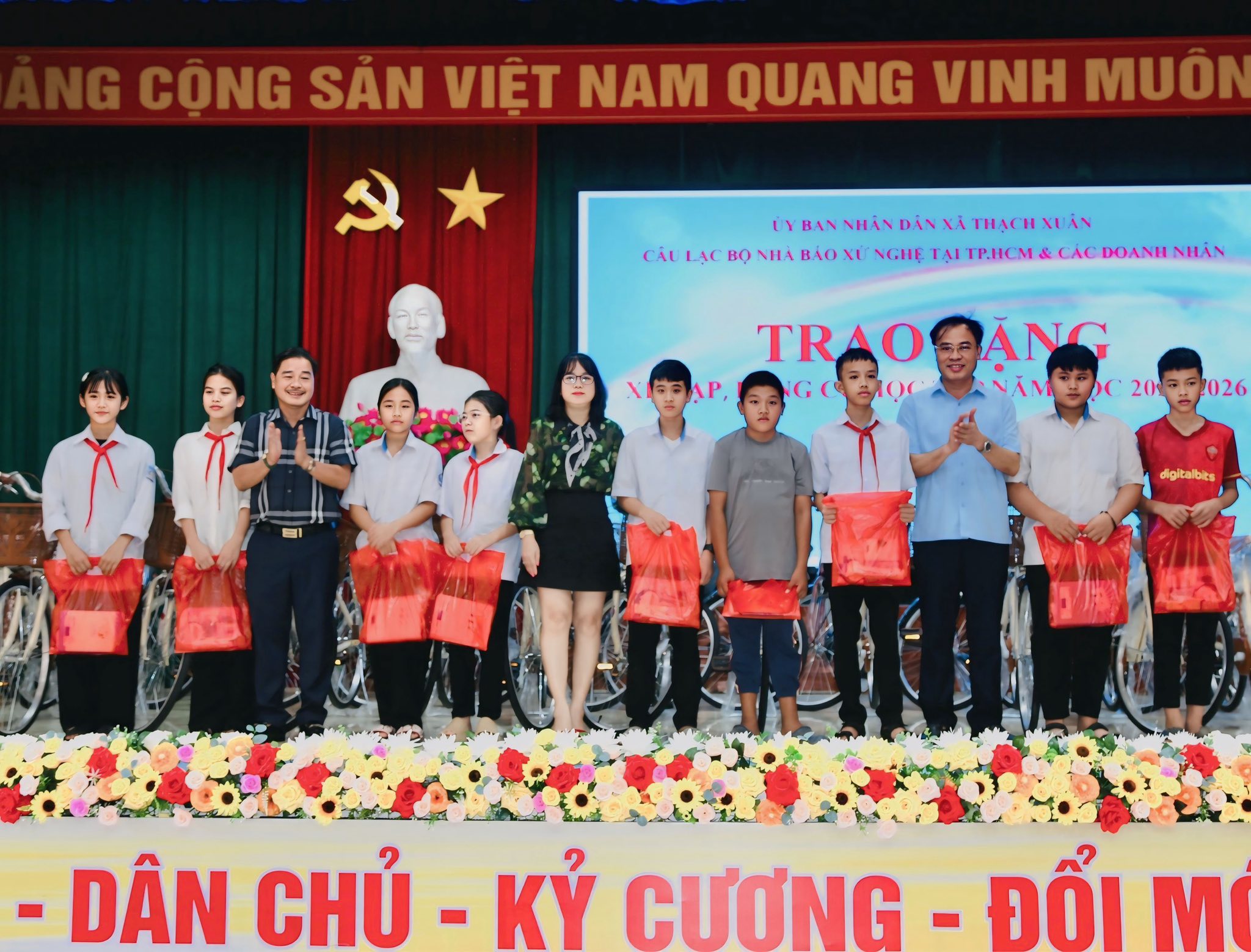 Sáng 24/08/2025, Sở Giáo dục và Đào tạo phối hợp với Câu lạc bộ Nhà báo xứ Nghệ tại Thành phố Hồ Chí Minh và các doanh nghiệp đồng hành tổ chức trao tặng 30 chiếc xe đạp và các dụng cụ học tập cho học sinh có hoàn cảnh khó khăn trên địa bàn xã Thạch Xuân.