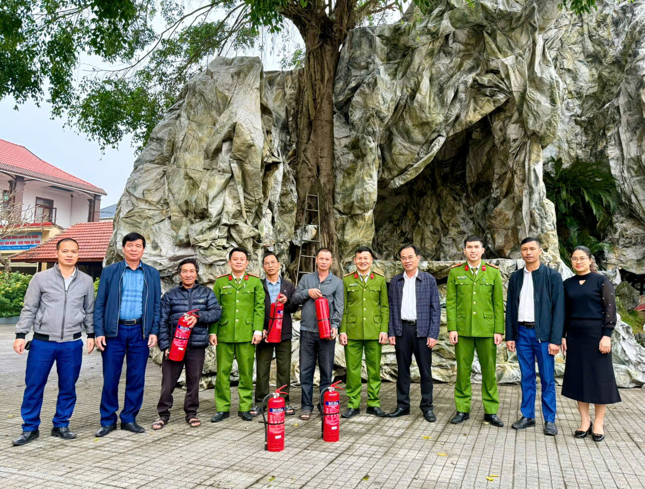 Công an xã Thạch Xuân trao tặng bình chữa cháy tại giáo họ An Hòa