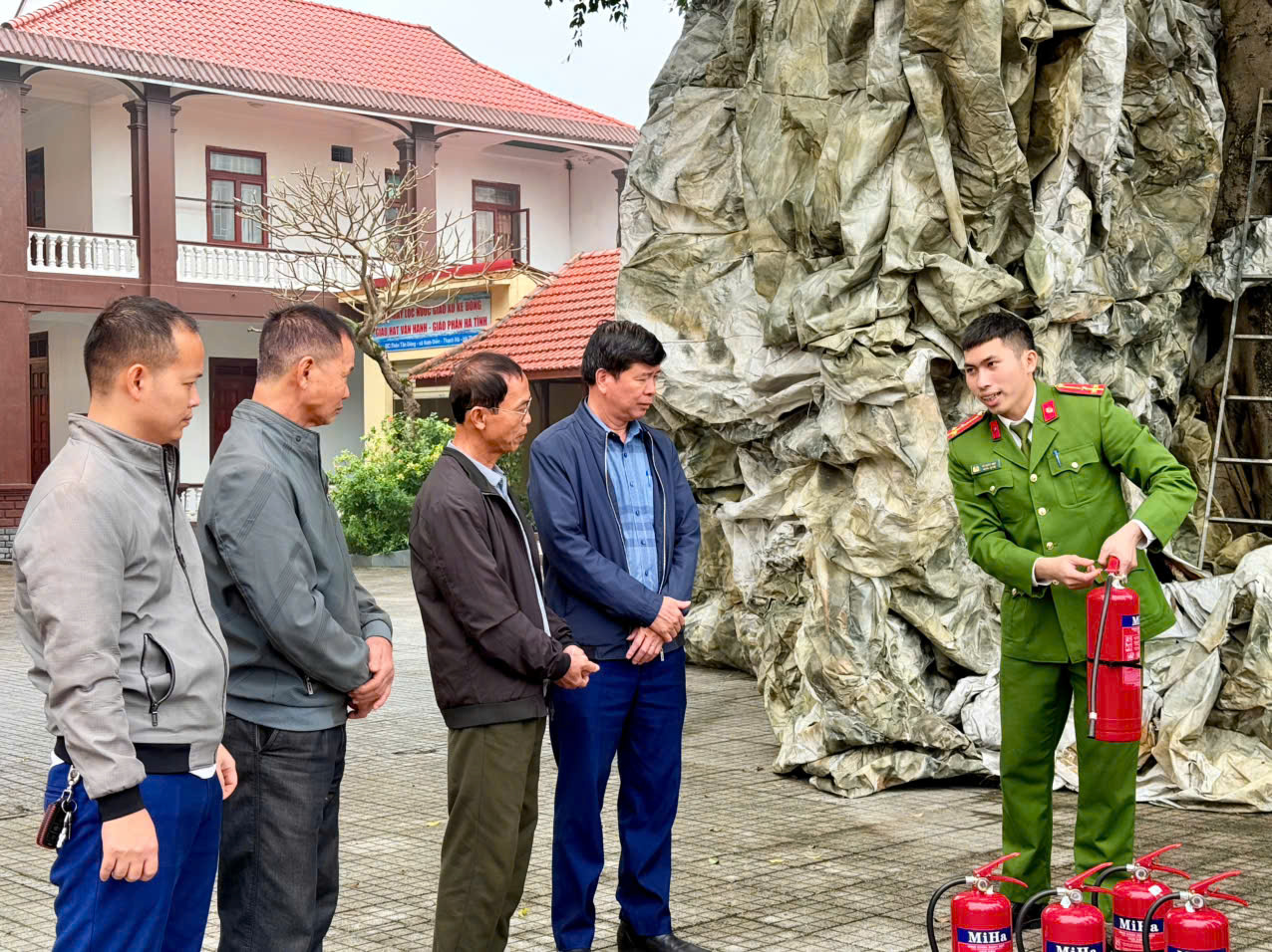 Tại buổi trao tặng, đại diện Công an xã đã gửi lời chúc mừng tới linh mục quản xứ và toàn thể bà con giáo dân đón mùa Giáng sinh an lành, vui tươi và tràn đầy hồng ân. Đồng thời, phổ biến một số kỹ năng sử dụng bình chữa cháy, hướng dẫn xử lý tình huống khi có sự cố cháy nổ, tuyên truyền các quy định về đảm bảo an toàn PCCC trong mùa lễ hội cuối năm.