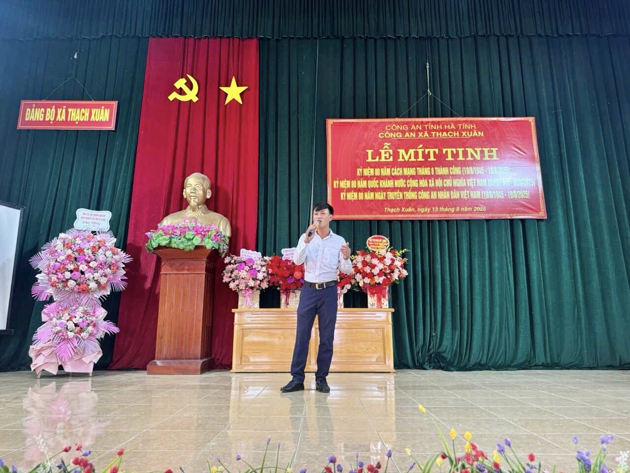 Chiều 13/8/2025, tại xã Thạch Xuân, Công an xã tổ chức Lễ Mít Tinh Ngày kỷ niệm 80 năm ngày Truyền thống Công an nhân dân Việt Nam (19/8/1945 - 19/8/2025)
