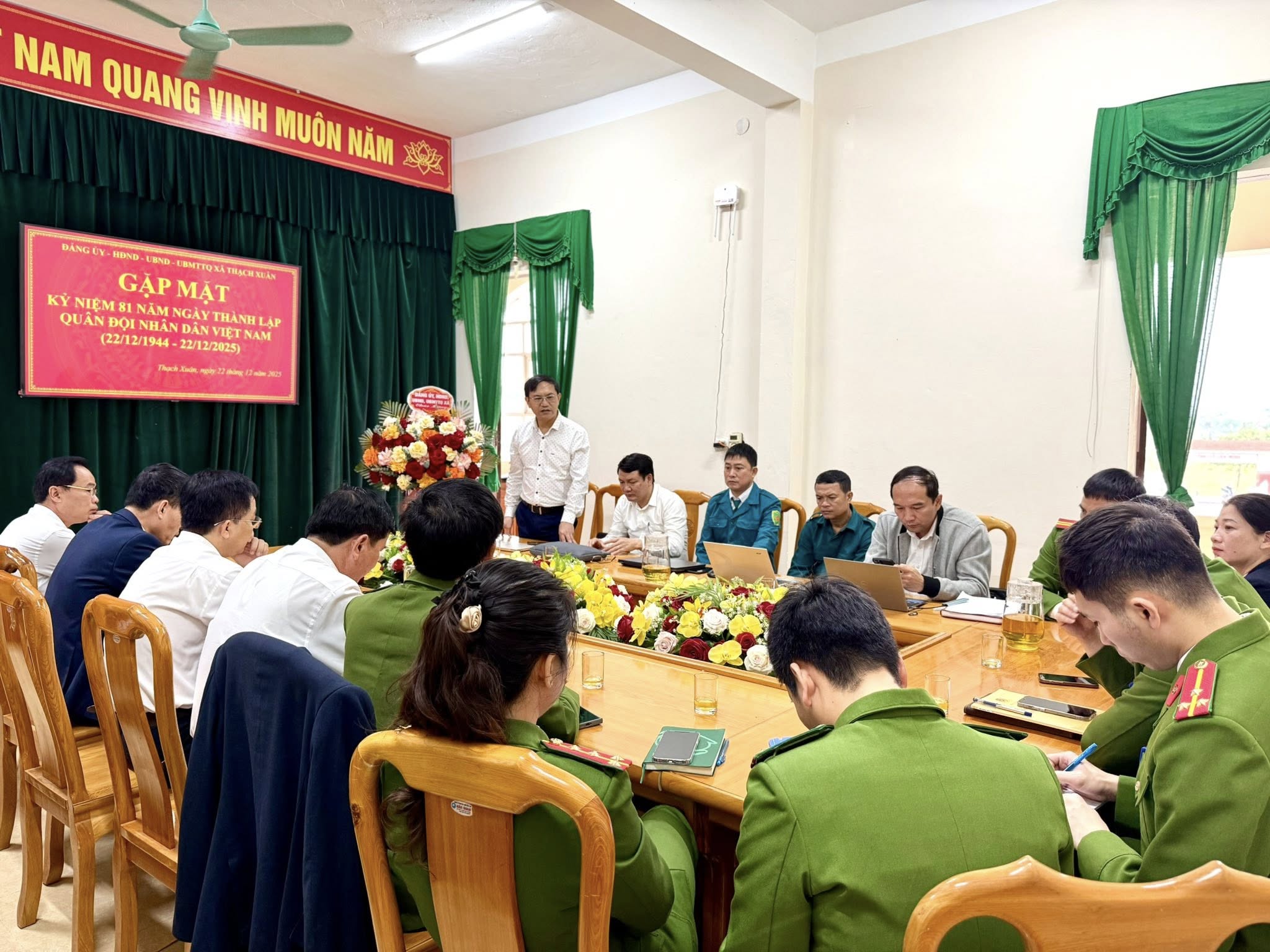Phát biểu tại buổi gặp mặt, thay mặt cấp uỷ, chính quyền địa phương, đồng chí Nguyễn Bá Hà-Bí thư Đảng uỷ, Chủ tịch HĐND xã chúc mừng Ban CHQS xã nhân ngày thành lập. Đồng chí Bí thư Đảng uỷ ghi nhận, biểu dương những kết quả mà Ban CHQS xã đã đạt được trong thời gian qua.