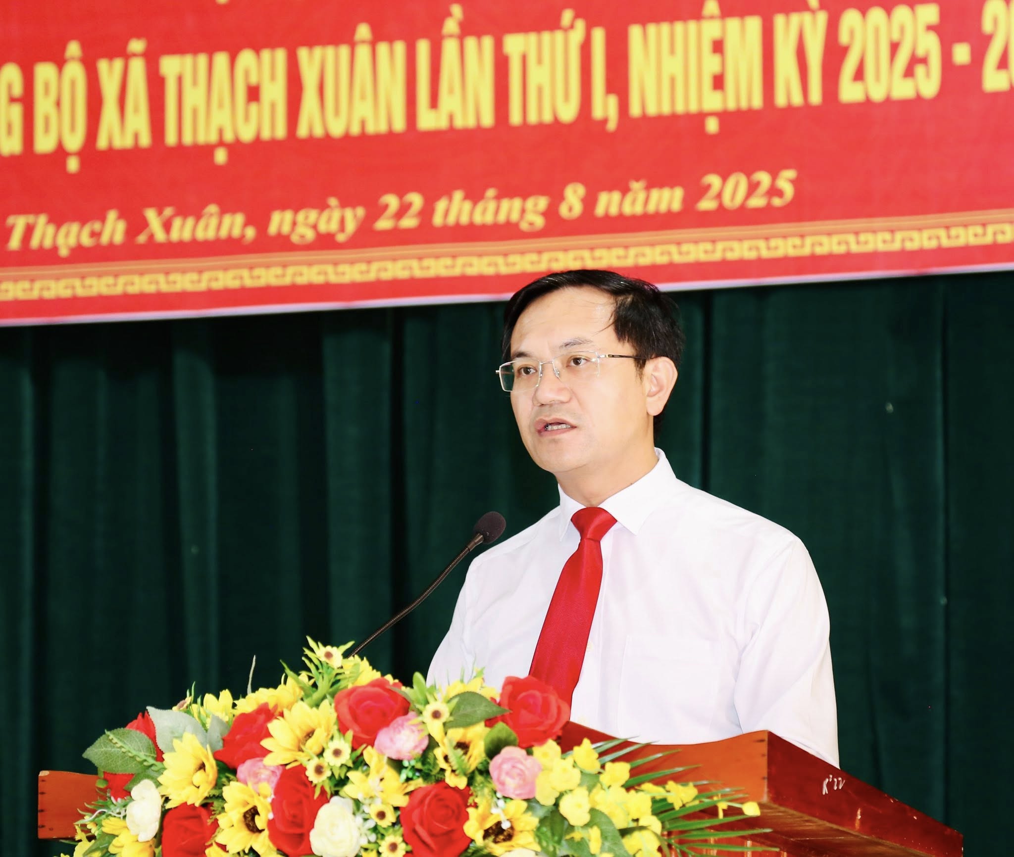 Đại hội đại biểu Đảng bộ xã Thạch Xuân lần thứ I, nhiệm kỳ 2025-2030 đã được tổ chức thành công tốt đẹp. Công tác chuẩn bị và tổ chức đại hội được thực hiện chu đáo, bài bản, đầy đủ các bước, bám sát các quy định hướng dẫn của cấp trên. Trong quá trình chuẩn bị các văn kiện và tổ chức đại hội Đảng ủy đã phát huy dân chủ, cầu thị lắng nghe các ý kiến tham gia góp ý của cán bộ, đảng viên. Báo cáo chính trị đã bám sát thực tiễn, đánh giá toàn diện quá trình thực hiện nghị quyết đại hội nhiệm kỳ qua, làm rõ những kết quả đạt được, những nét nổi bật trong nhiệm kỳ, đồng thời nghiêm túc nhìn nhận và thẳng thắn chỉ ra những hạn chế, khuyết điểm; phân tích nguyên nhân chủ quan, khách quan, rút ra bài học kinh nghiệm; đề ra phương hướng, mục tiêu, nhiệm vụ trọng tâm, mũi đột phá cho nhiệm kỳ tới phù hợp với tình hình thực tiễn và xu thế phát triển.