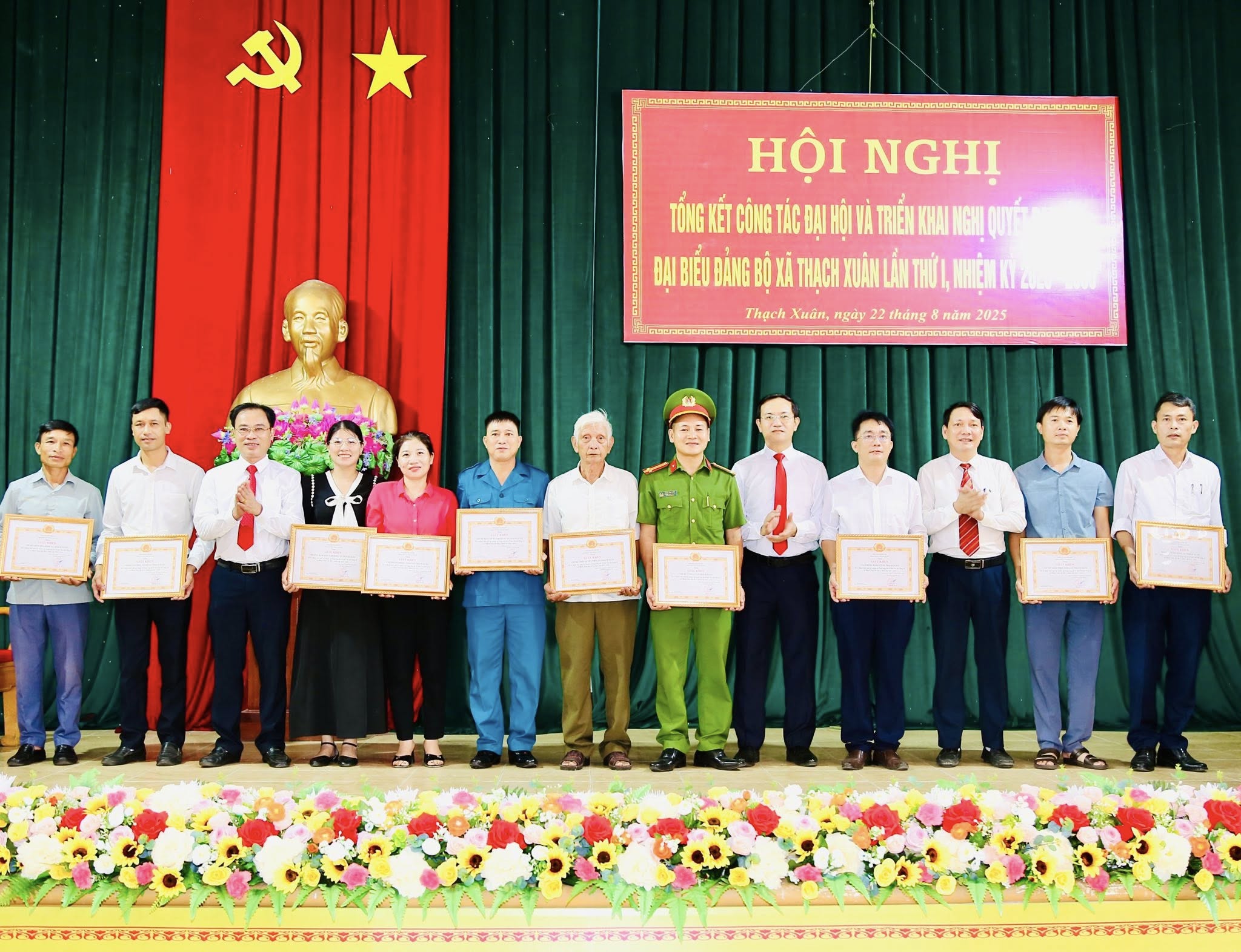 Nhân dịp này, Đảng bộ xã Thạch Xuân đã khen thưởng cho các tập thể, cá nhân có thành tích tiêu biểu trong tổ chức Đại hội đại biểu Đảng bộ xã lần thứ I, nhiệm kỳ 2025-2030.