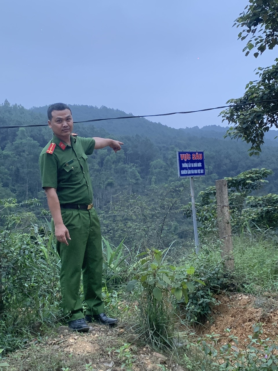 Công an xã Thạch Xuân cắm biển cảnh báo tại khu vực nguy hiểm