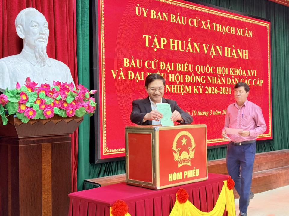Cũng tại hội nghị, Uỷ ban bầu cử xã Thạch Xuân đã tập huấn vận hành bỏ phiếu bầu cử đại biểu Quốc hội khoá XVI bà ĐB HĐND các cấp, nhiệm kỳ 2026-2031.
