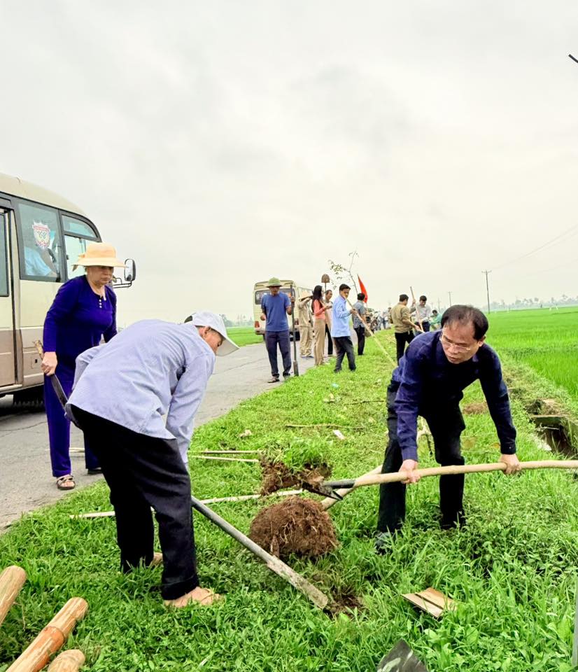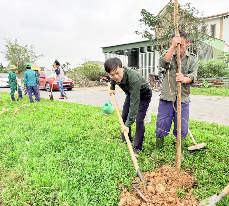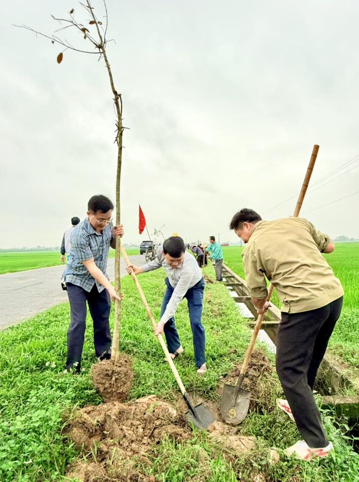 Ngay sau lễ phát động, các đồng chí lãnh đạo địa phương cùng tham gia trồng cây xanh dọc tuyến đường tại thôn Đông Sơn và Đài tưởng niệm liệt sỹ tại thôn Tân Thanh.
