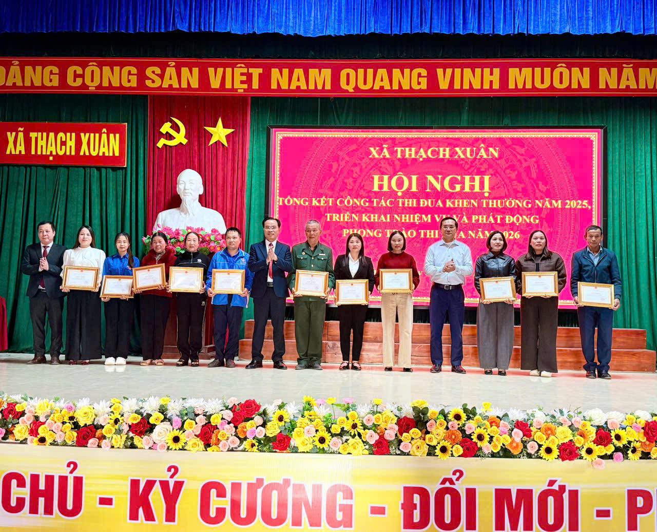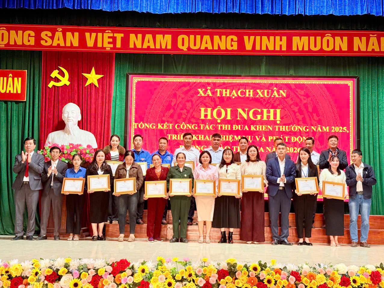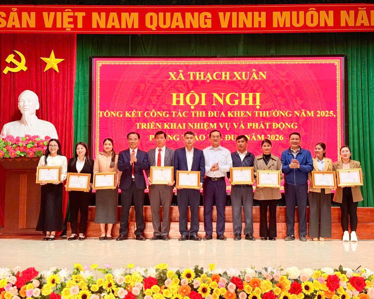 Cũng tại hội nghị, xã Thạch Xuân đã trao giấy khen các danh hiệu: chiến sỹ thi đua cơ sở, lao động tiên tiến cho các tập thể và cá nhân đạt thành tích xuất sắc trong năm 2025.